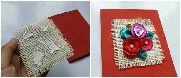 Preparar el papel de la tarjeta. Puede color el papel grueso como tu quieras, pero asegúrese de que la combinación de colores de la tarjeta y flores de Satén partido muy bien.