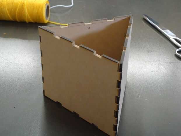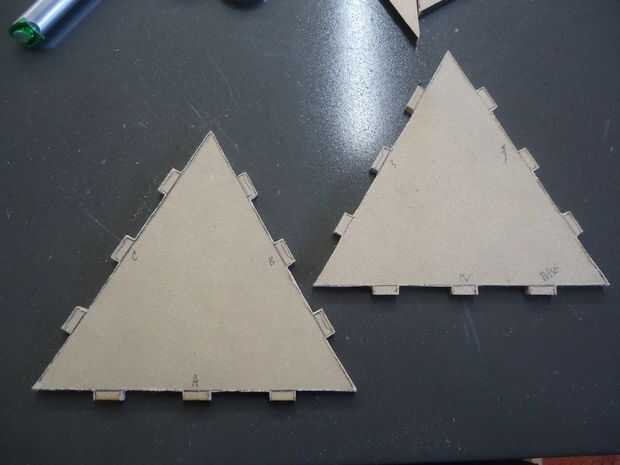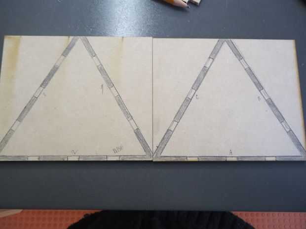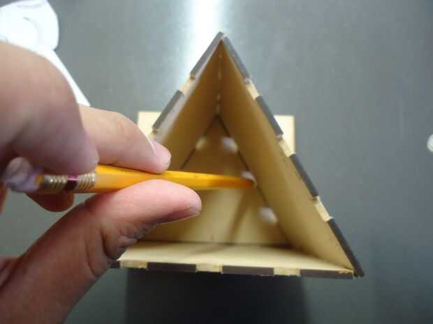Después de asegurarse las tres caras ensamblan bien, colocar encima de una de las tablas sobrantes y marcar la forma de la base un modo de esta quede del tamaño correcto y también embone con las tres caras (hacer lo mismo con la tabla de ultima).