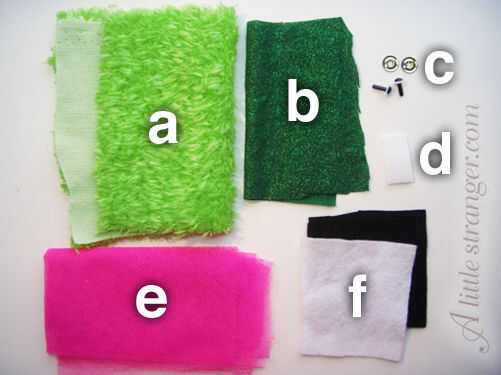 e) tela del bolsillo. Usé tela metálica de malla rosa, trabajo cualquier delgada tela no se deshilache.