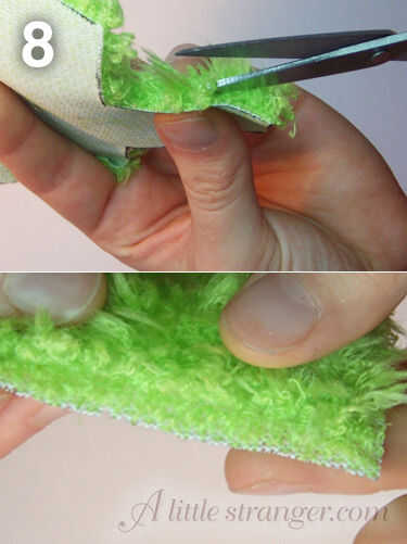 7) cortar la tela de la piel dejando un margen de 5 mm a todo alrededor. Este es el margen de costura. Uso afiladas tijeras puntiagudas y tratar de cortar a través de solo la tela del forro para evitar parches de planos en la piel.