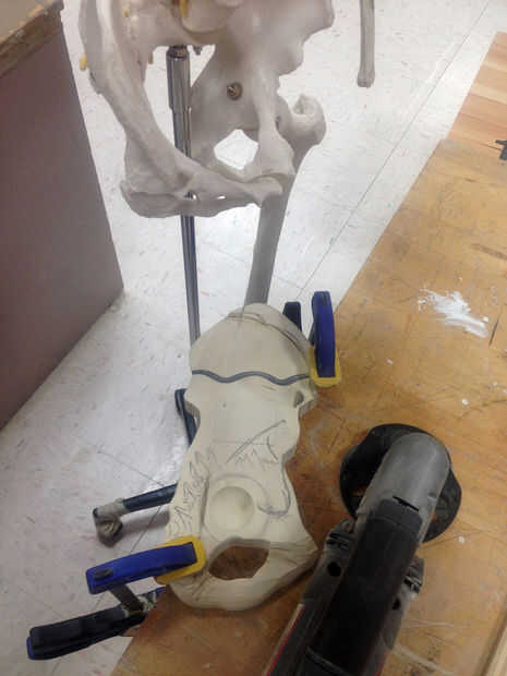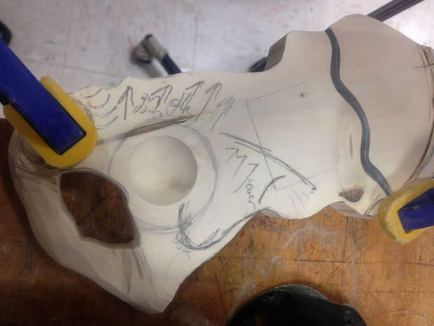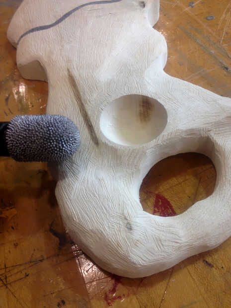 Se puede ver en la tercera imagen que comenzó con un papel de 24 granos de arena en una amoladora de ángulo pequeño. Luego terminé con la talla más detallada con una amoladora de nemático con un curso de pulido poco. El curso pulido poco a la izquierda una textura deseada que me recordó la apariencia de un hueso real.