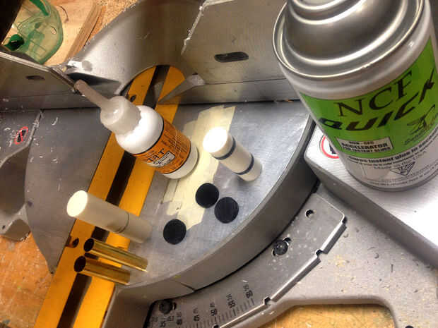 La elección más difícil fue crear un bolígrafo que parecen un hueso y también complementar el crack negro en la pieza principal. Opté por usar una imitación hueso pluma en blanco de Woodcraft #154043 y otro en blanco de la pluma de acrílico negro. Cortar el negro en blanco pequeño 1/8" las astillas y el hueso de la Fauv en secciones más grandes pude pegarlos para dar la apariencia de un dedo con el negro, siendo las articulaciones. En cada equipo hay tubos de latón en el tamaño correcto que es necesario crear la pluma. Cuando pegado a los dos espacios en blanco sólo asegúrese de que es más grande que el tubo de latón.