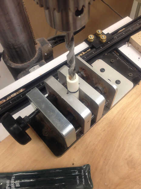 Cada kit de pluma viene con instrucciones. Este kit especial que tienes que perforar tus lápiz los espacios en blanco con uno de 12,5 mm y el otro es 13/32. Con cepo y un taladro perforé el 12,5 mm en el orificio más corto en blanco y 13/32 en el gran espacio en blanco: siguiendo las indicaciones de fabricación. Ahora fije el tubo de latón en los espacios en blanco de la pluma para poder convertirlos. Te recomiendo tomar el papel de lija de grano 60 y desbaste del tubo de latón para permitir que el pegamento se adhieren mejor. Luego mezcla epoxy 5 minutos más y se extendió por el tubo y dentro de los espacios en blanco. Inserte el tubo de latón y asegúrese de empujar el tubo completamente dentro del espacio en blanco. Antes el pegamento se seca toma un hisopo para limpiar cualquier exceso de pegamento (si usted no va a ser difícil para el siguiente paso).
