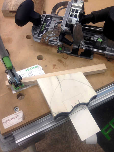 Utilicé una herramienta Festool Domino XL. En primer lugar, establecer el tamaño del agujero. Esta herramienta le permite sumergirse un poco que no gira, sino también se mueven en un movimiento lateral y hacia atrás. Una tarjeta de visita es de aproximadamente 2 "x 3 1/2" x cómo muchas tarjetas que desea almacenar. He creado un 2 1/4 "x 4" x 1/2 "ranura. Poner las dos piezas de madera juntos que hace marcas en la superficie para asegurar las ranuras alinearíamos. Entonces les fijándola a una mesa que hundí con la herramienta de Domino con una broca de 1/2. Establecer paradas en la herramienta permite una ranura profunda de 1 1/4" en la hoja más pequeña y 2 3/4" profundidad ranura en la pieza más grande. Prueba con una tarjeta real muchas veces para asegurar que se ajusta.