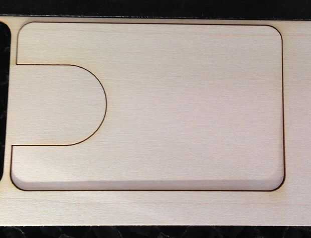 Tilo es relativamente suave y es fácilmente cortado y grabado. Grabado de 100% de potencia y velocidad 40% funcionado bien, igual que 100% de potencia y 2% en la velocidad de corte.