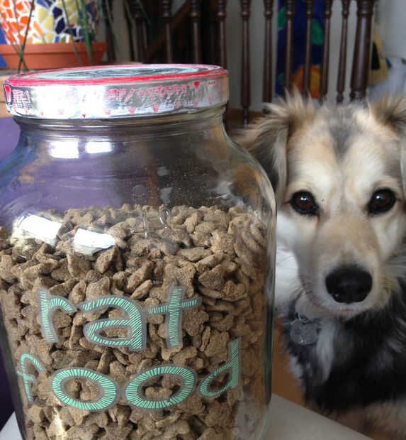 Hace unas semanas nuestra familia adoptó dos ratas hembras jóvenes, puntada y el piñón. Unos días más tarde, nuestro cachorro curioso Mocha, descubre la bolsa de alto valor proteico de los alimentos almacenados en el entrepaño debajo de su jaula, rompió abierto la bolsa y tenía una fiesta! El vaso rústico de comida de rata es cómo cogió este problema de raíz :)