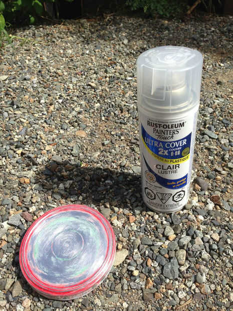 Una vez que estés satisfecho con el color restante en la tapa, cabeza fuera con su pintura en aerosol transparente y dar a la tapa un par de capas finas. Asegúrate de coger los bordes de la tapa todo el camino alrededor ayudar a protegerlo contra aherrumbrar if la tapa nunca se moja.