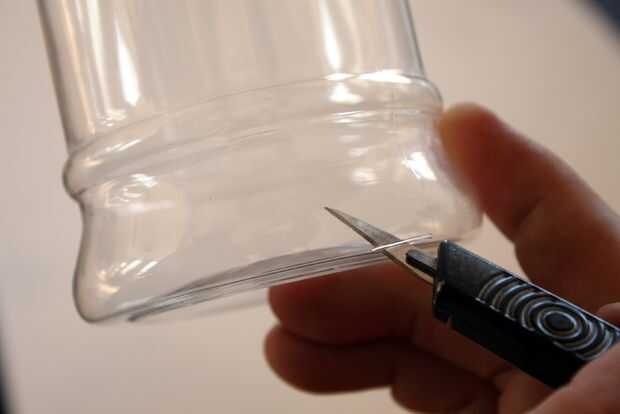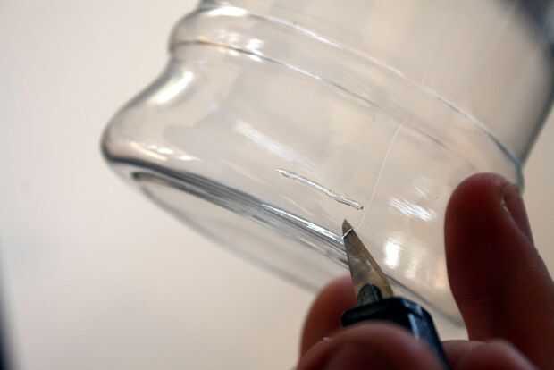 Por lo que es el momento de introducir el cuchillo en el recipiente de plástico, corta bien pero ten cuidado. Corte lejos de usted.