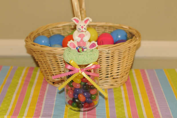 Llenar esta jarra querido con todo tipo de colores dulces para regalar esta semana Santa. Un conejito de Pascua se sienta con orgullo en un nido de hierba con los huevos de Pascua miniatura hechos con arcilla seca de aire. Qué una divertida forma de celebrar la Pascua por esculpir su propio conejito!!