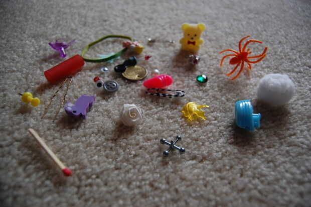 Recoger un surtido de pequeños objetos. Dependiendo de que usted está haciendo para que, el objeto puede ser muy pequeño para un desafío más duro o más grande para una persona con mala vista o frustra fácilmente. Creo que el mejor camino a seguir es una combinación de tamaños. Aquí están algunas ideas: