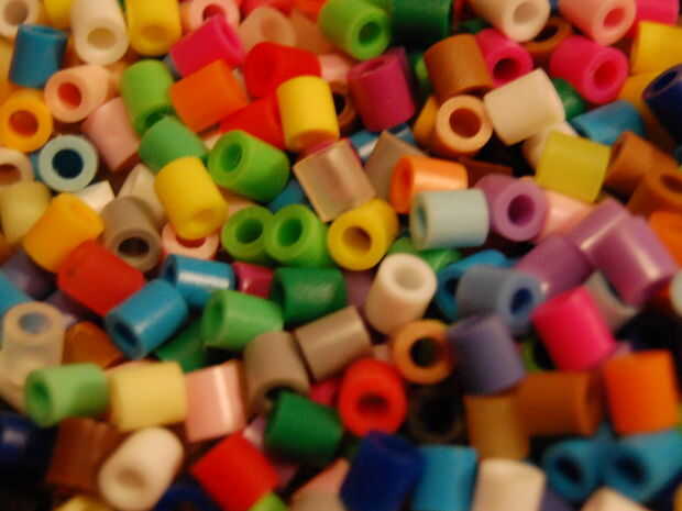 Para mi material de relleno, utilicé perler cuentas que son similares a las piezas de plástico en los juguetes de encontrarlo original. Compré unos mil granos por unos pocos dólares en Amazon. Para llenar la jarra, vierta alternativamente en las cuentas perler y tus objetos para conseguir una mezcla uniforme y desafiante.