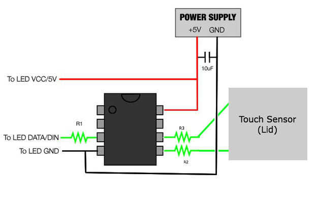 Usted puede hacer su tarro una lámpara táctil usando la biblioteca de Sensor capacitivo y dos pines en el microcontrolador.