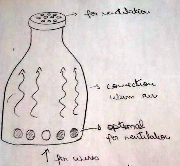 Si no desea mantener los cables fuera del cuello de la botella, puede hacer un agujero en la parte inferior. Para eso, necesita usar una herramienta rotativa o máquina de perforación con una broca de diamante (redondeado es mejor). Use agua para lubricar y no permitir que los bits a calentarse.