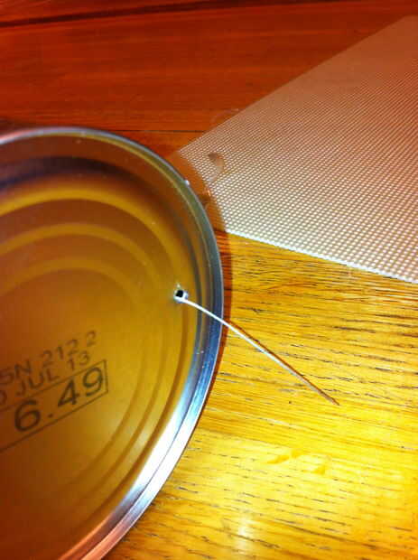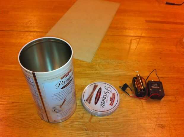 parece que ya termines con el circuito, ahora tienes que preparar la lata, (tarro de galleta). Utilice un destornillador o cortantes objetos para hacer un pequeño agujero en la parte inferior de la jarra. poner una cadena a través de ella (de modo que la alarma no va en la u)...