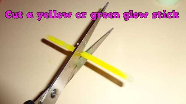 Para hacer una jarra de firefly, corte un palillo del resplandor amarillo o verde