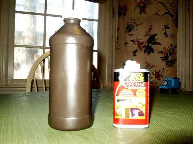 Con un pierce la botella de peróxido en la parte inferior de la protuberancia superior del cuchillo (X-acto, etc.). Hay dos áreas bombeadas en la común botella de H2O2, uno en la parte inferior y otro en el cono en forma de superior cumple con la sección cilíndrica. Cortar la parte de cono tan cuidadosamente como sea posible.