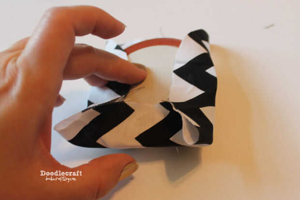 Por lo tanto, el pegamento en la parte blanca... solo agregar el pegamento y doblar la tela firmemente.