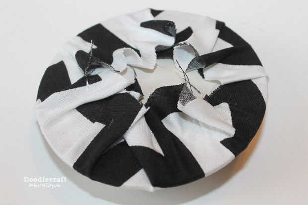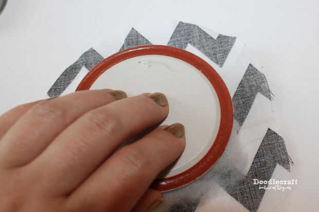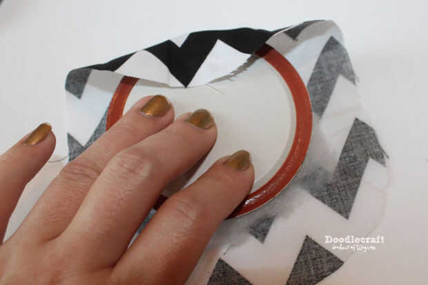 Repita en los cuatro lados antes de recorrer la tapa entera... Esto mantendrá la tensión en la tela.