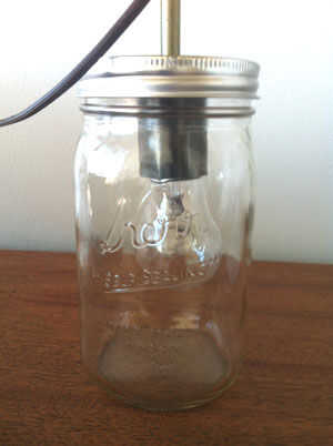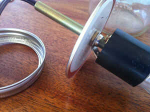Cada frasco deberá verse ahora como la segunda foto. Antes de colocar el otro extremo del cable con los cables del techo, desenrosque la tapa y saque la jarra. No quiero el peso adicional en este punto.