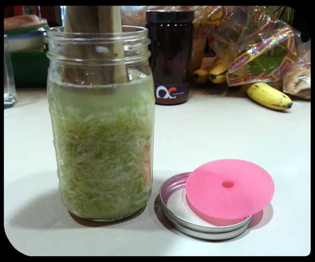 Tarro de masón chucrut hecho fácil con un tubo de salmuera (3 / 4 paso)