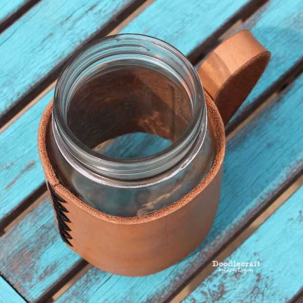 Convertir un tarro de cerveza de tamaño en una taza de apariencia rústica con una chaqueta de cuero simple!
