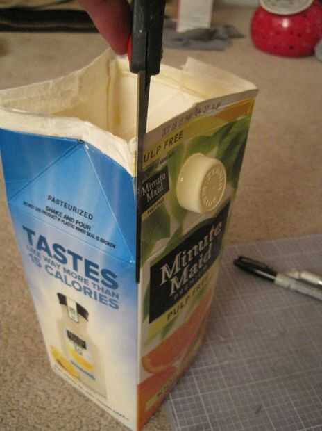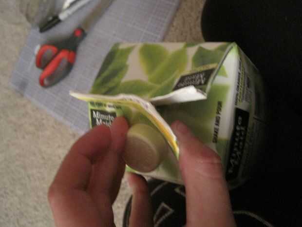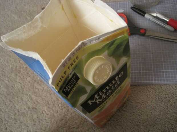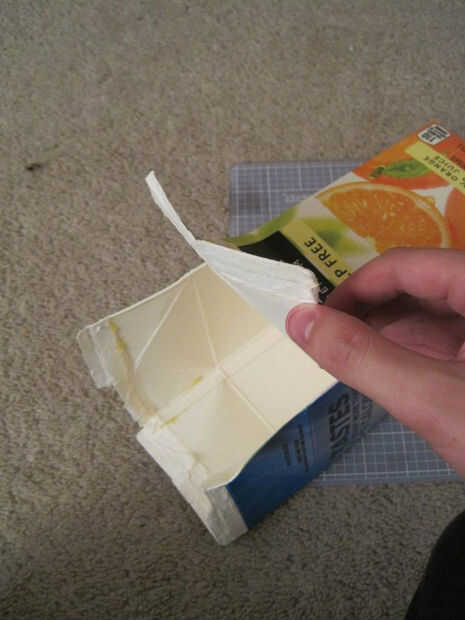 Para llegar a la salida, tenemos que abrir la caja de cartón para recortar los trozos buenos. Abra la tapa, teniendo cuidado de no dañar la zona cerca de la boquilla. Una vez terminado, corte los lados de la caja para crear una gran aleta sobre mitad del tamaño de la caja.
