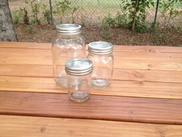 Tarros de masón, hechos originalmente para conservar la cosecha, son una fuente fácilmente disponible, barata de envases de vidrio, que vienen en una variedad de interesantes formas, tamaños y colores incluso! Una característica muy conveniente compa