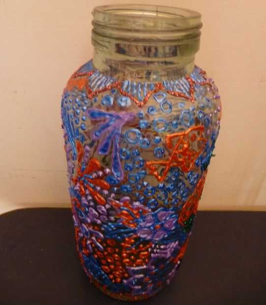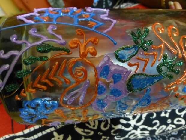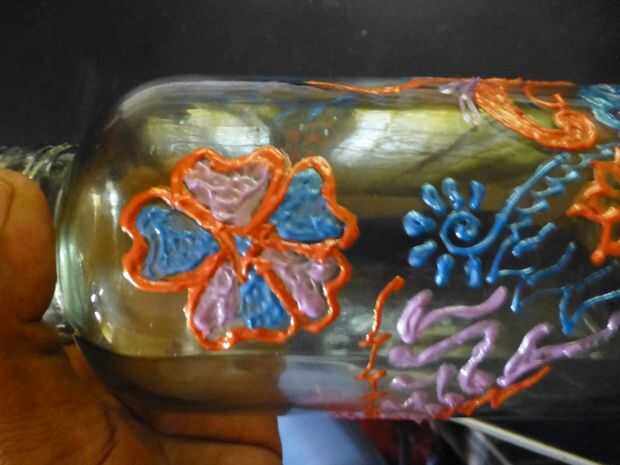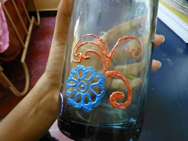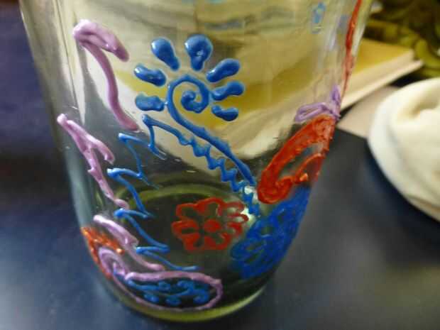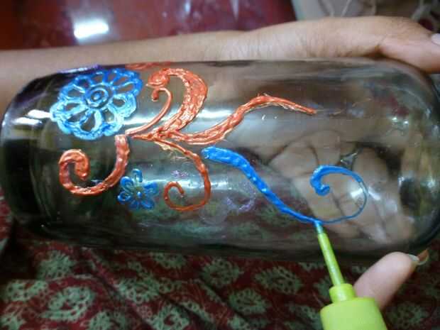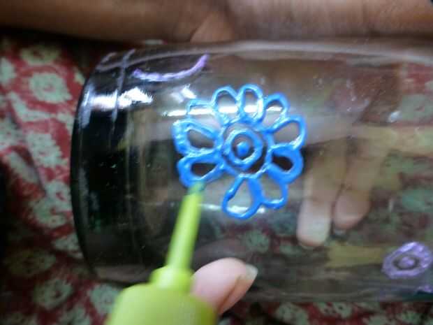 Ahora, con los trazadores de hacia fuera-líneas 3D Fevicryl, hacer diseños en el exterior de los tarros.
