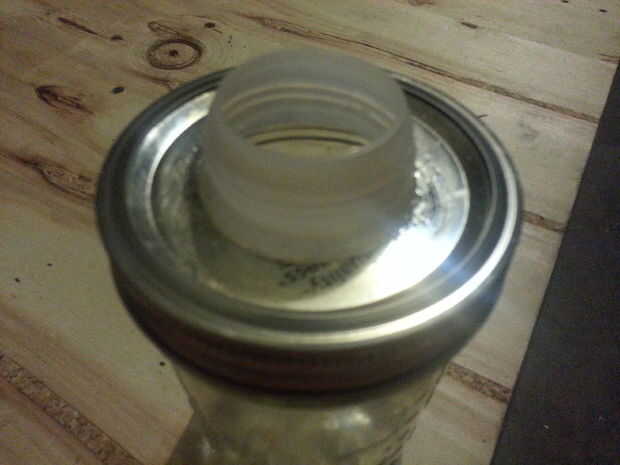 Nos pareció mejor que la cura de la cola mientras que todas las piezas estaban en posición.  Coloque la tapa sobre la jarra y aplique una presión uniforme en el centro a Junte las tapas. Garantizar con la banda y dejar que la cura del sellador.