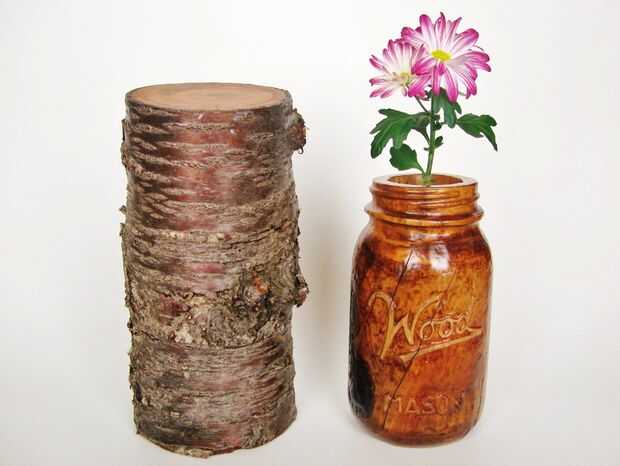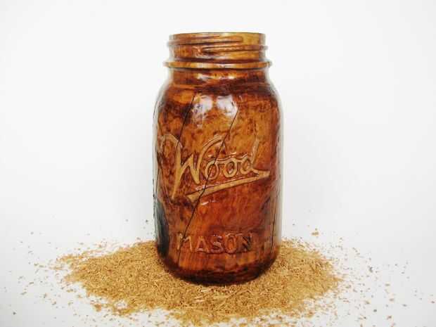 Se trata de un tarro de masón madera 12 pulgadas de altura, tallada en un tronco de cerezo.