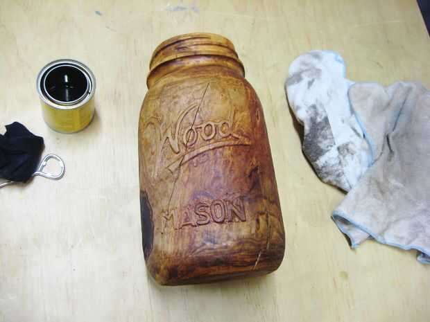 La jarra estaba manchada con tinta base aceite color roble dorado. Algo lamentó esta decisión, como creo que dejándolo sin mancha y simplemente dándole una capa clara hubiera mirado mejor. Oh bueno, eso es lo que tengo para no pretesting en algún retal!
