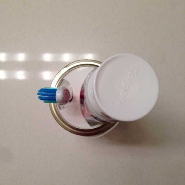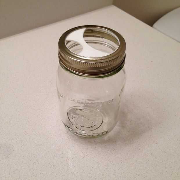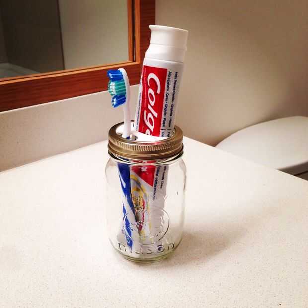 Tarro de masón de reciclado en un sostenedor del cepillo de dientes y pasta dental. Puede descargar el siguiente archivo STL. No todos los tarros de masón son creados igualmente por lo que tenga que rediseñar esta parte. Vea las instrucciones a continuación.