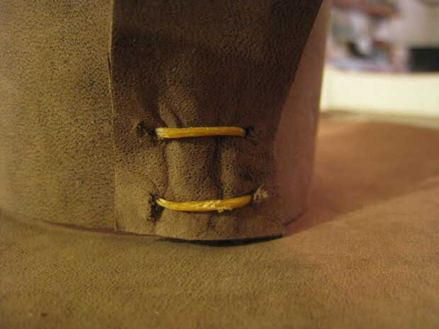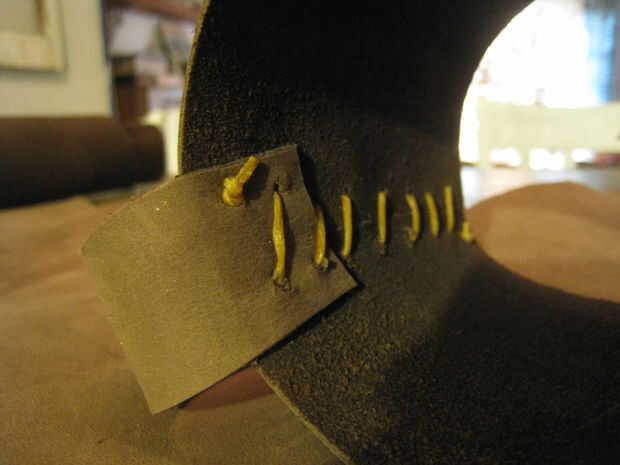 Ahora taladro/punzón 4 agujeros en cada extremo de su mango. Intente el mismo espacio como los agujeros en el cuerpo de la cubierta.