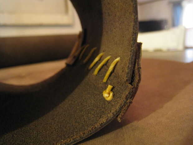 1. para crear agujeros en la piel tienes varias opciones. Uso un par de agujeros de cuero punzón pinzas. (que puede ser bastante caro) O utilizar un martillo y un clavo para perforar agujeros sobre un trozo de madera de desecho o utilizar un taladro y broca (o Dremel) para perforar los agujeros de taladro en el cuero sobre un trozo de madera de desecho.