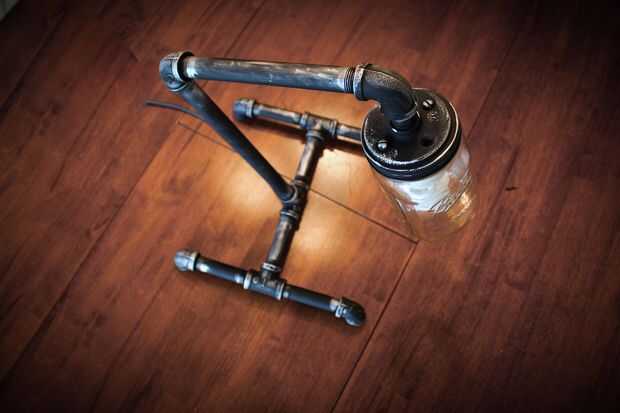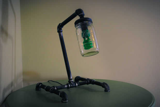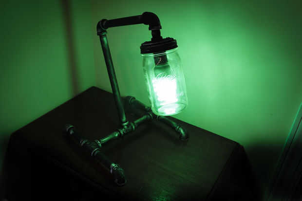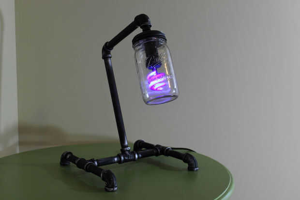 MaterialesSoldadura B JLámpara simpleBombillas de vatios pequeños que caben en la luminaria (número de partido de zócalos de lámpara)Tarros de Mason (número de partido de zócalos de lámpara) con tapas superior abiertasPintura en aerosol del color des