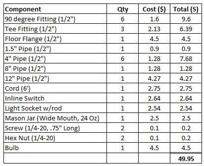 MaterialesSoldadura B JLámpara simpleBombillas de vatios pequeños que caben en la luminaria (número de partido de zócalos de lámpara)Tarros de Mason (número de partido de zócalos de lámpara) con tapas superior abiertasPintura en aerosol del color des