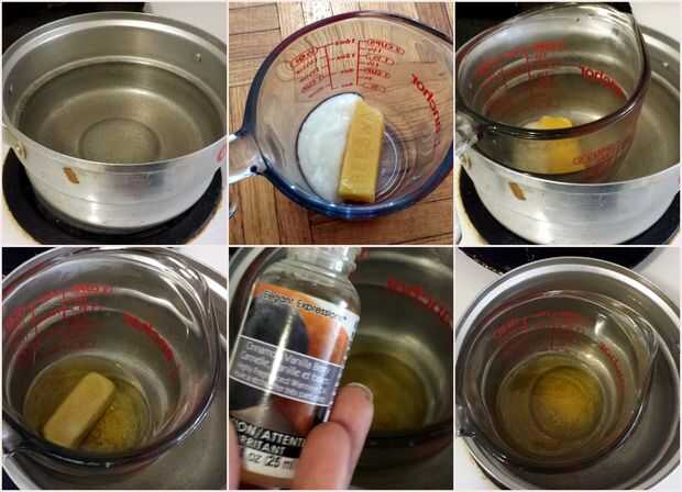 Tomar aceite y cera de abejas en pyrex taza de medición.