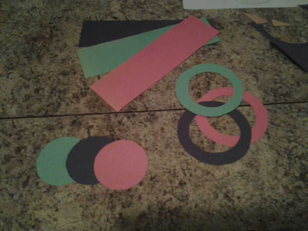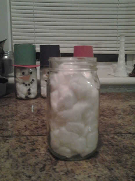 Después de vació los tarros y consiguió las arañas hacia fuera, poner las bolas de algodón en el (cuadro 1). I mide la circunferencia de la abertura de la jarra con string(2nd picture) y utiliza con mi regla para medir la pieza que hace que el cuerpo del sombrero y entonces utiliza mi regla otra vez para hacer el cuerpo del sombrero 3 pulgadas de alto. Puede hacer suyo cualquier altura ajusta el tamaño de tu frasco. Yo al revés mi tarro y trazada alrededor de él para obtener la pieza superior de la hat(3rd picture). Encontré una gran taza de café al rastro para mi brim(3rd picture). Por supuesto puede utilizar cualquier objeto circular para hacer el círculo más grande. La taza sólo pasó a ser la primera cosa que encontré que era un círculo perfecto y casi doble de la circunferencia de la parte superior. Hice mi plantilla en cartulina porque es grueso y más fácil de trazar alrededor de que el papel normal. Una vez que tenía preparado, recorto (cuarta foto). Utilicé papel de construcción negro, verde y rojo para hacer la hats(7th picture). Cartulina funciona igual de bien, pero por desgracia mi rojo estaba en el lado más rosado. Opté por el bonito rojo del papel de construcción. I poner el círculo más pequeño en el centro de la más grande y luego cortar el círculo pequeño para hacer la plantilla para el ala del sombrero (cuadros 5 y 6). Por supuesto puede usar colores de su propia elección, pero si haces negro sombreros guardar las sobras para hacer los ojos, boca y botones porque no necesita mucho del negro para las caras. Hice seis frascos y todavía tenía restos de papel de construcción negro.