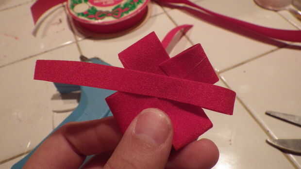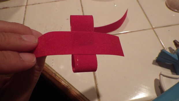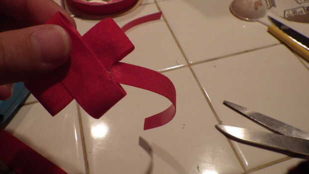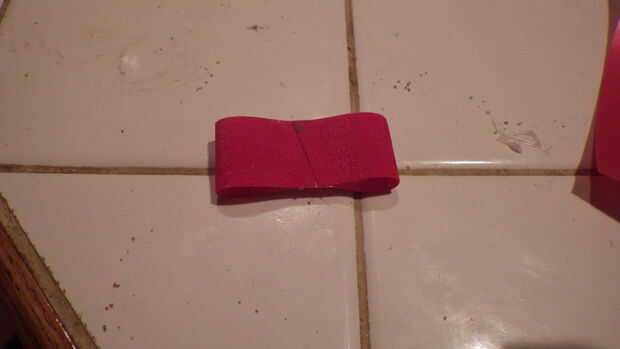 El arco es realmente fácil de hacer pero lleva unos pasos. Comienzo con un trozo de cinta largo doblar en sí mismo y dura tiene la longitud que desee. A continuación, doblar la otra pieza de caminos de longitud de cinta durante la primera y pegamento por los bordes otra vez. Corte una tira más larga de la cinta en medio formas de longitud de poner por cada lado. Cortar muescas en trozos gruesos de botón de la cinta y el pegamento en el centro