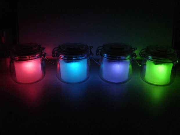 tarro de Sun-"almacén de tarros de mermelada mermelada, el tarro del sol recoge y almacena el sol para que se puede utilizar en la nochedos de color pueden cambiar de amarillo y azul muy bonito en la noche