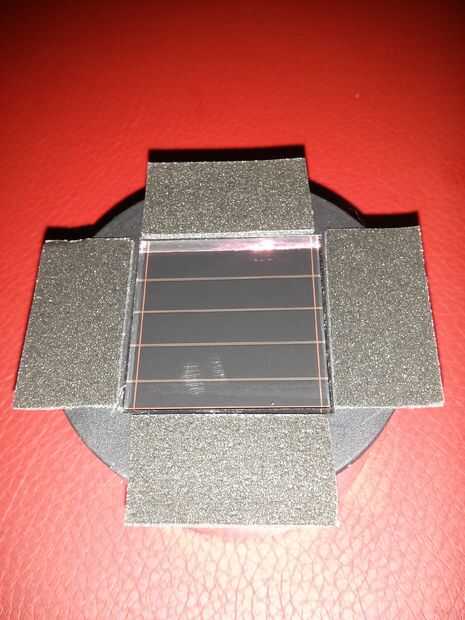 Después de pegarse en la cinta, vamos a conectar la luz de la parte interior de la tapa y el panel solar se hacia fuera de la jarra (Foto 3).