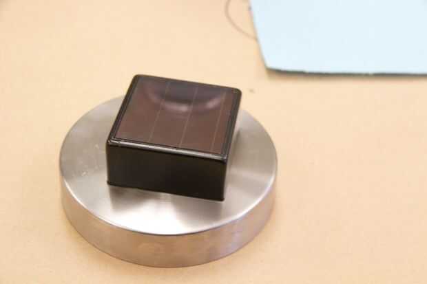 Para la luz, separar la Asamblea de la electrónica (sensor de foto, foco, baterías y células solares) del resto de la Asamblea (a menudo una caja de plástico, lo que refleja el espejo). Para algunas luces más pequeñas (como la Plaza de la última foto), es suficiente y se mantenga el plástico encajando en. Algunos más grandes tienen un montón de plástico extra alrededor de los que se puede quitar con una dremel o sierras de banda.
