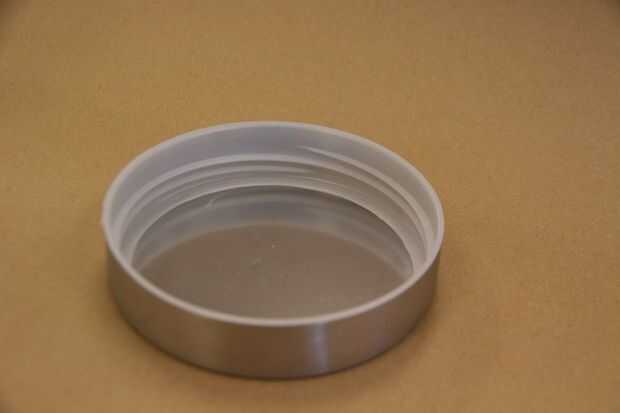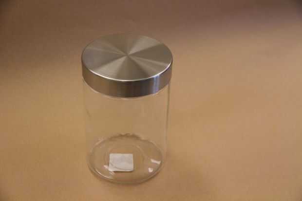 La jarra que se muestra a continuación que recibí de Michaels. Tiene una tapa de metal cepillado, que se puede ver es el casquillo del metal e hilos de rosca de plástico insertados. Desea que los hilos de rosca de plástico, pero no desea que el metal.