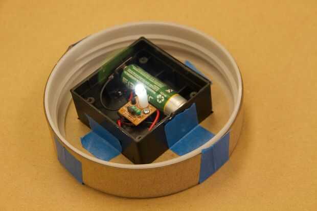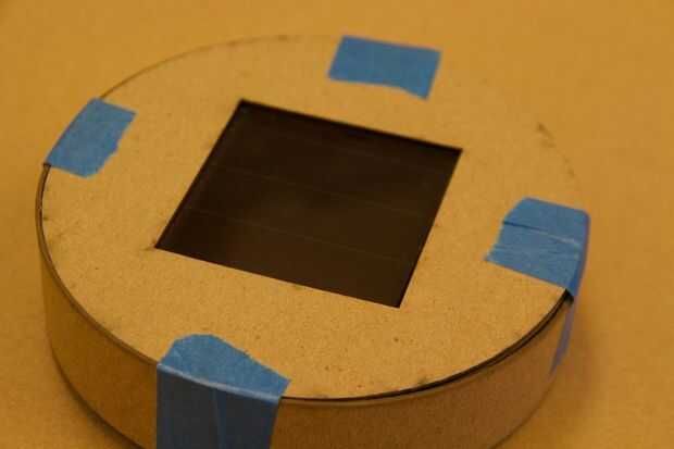 Acabarás necesitando tres piezas: la parte superior (con un agujero para la célula solar) y una tira larga para envolver alrededor de una piezas de soporte. Si el frasco es como el mío (sin tapa después de quitar el metal), necesita una pieza de apoyo porque no es lo suficientemente fuerte como chapa de madera.