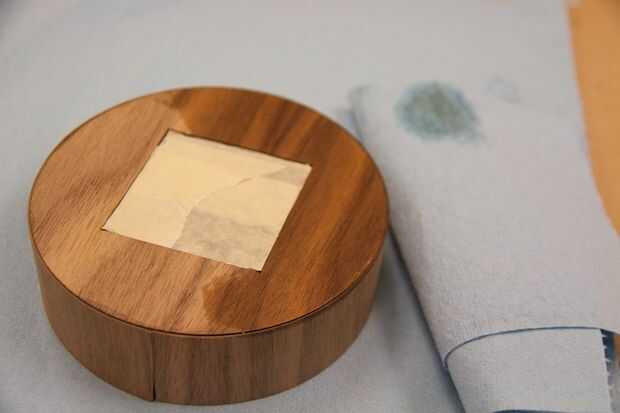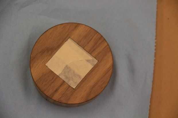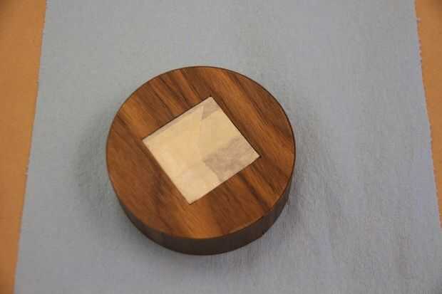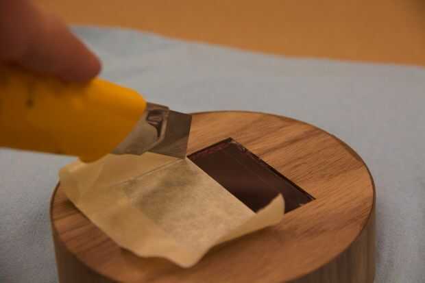 Enmascare la célula solar y siga las instrucciones en la botella hasta el final de la madera. Tómate tu tiempo (varios días) para terminar la chapa de madera, buscar y realizar mucho mejor para él.
