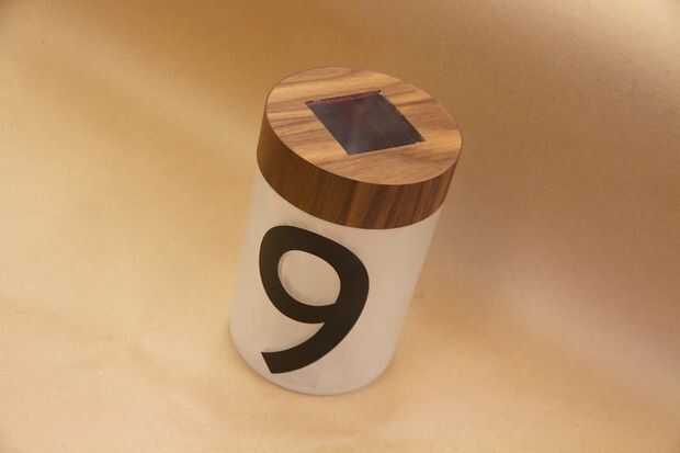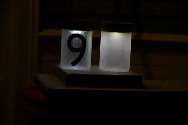 Hice dos de estos: dos de madera especies, dos formas de luz, dos técnicas de grabado/de la helada. Hizo como un número de casa. contraste es visible durante el día, la luz hace visible por la noche.