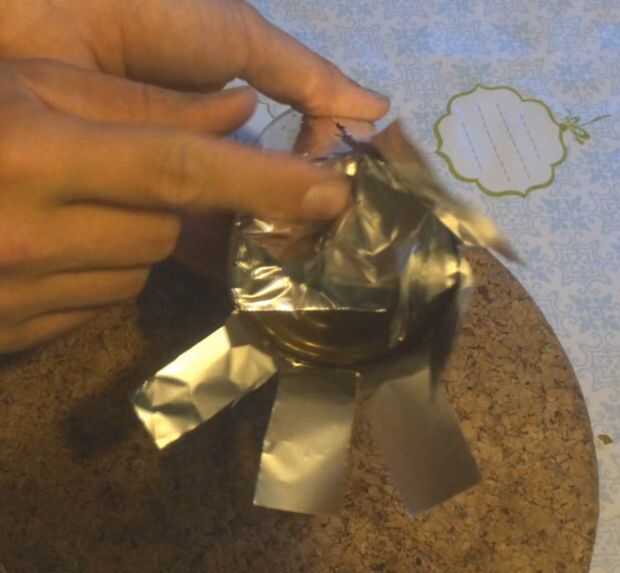 Luego use su botella y re-la hoja de papel. Doble la parte inferior y colocar el cilindro sin la botella en el tarro de masón.