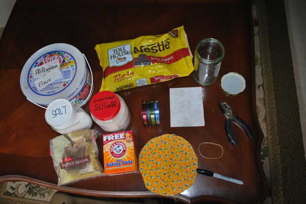 2 redondo trozo de tela que tiene un diámetro de 1-2 pulgadas más largos que la tapa de la jarra.