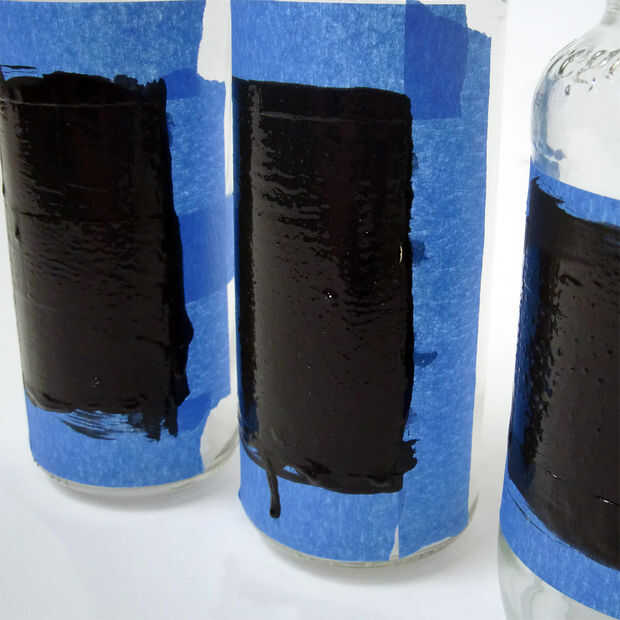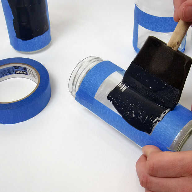 Es fácil de aplicar demasiada pintura al hacerlo, así que comience con sólo una capa ligera y suba. Pare los frascos y dejar hasta que se seque al tacto, unos 30 minutos.