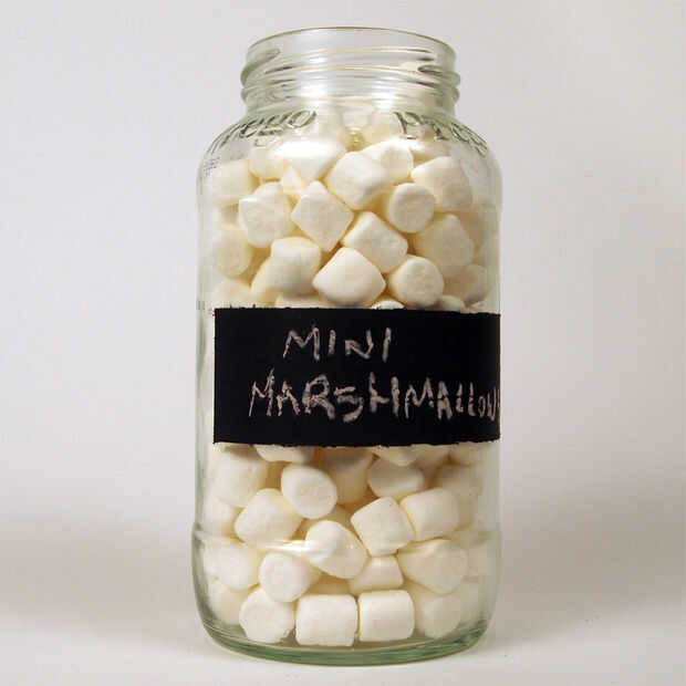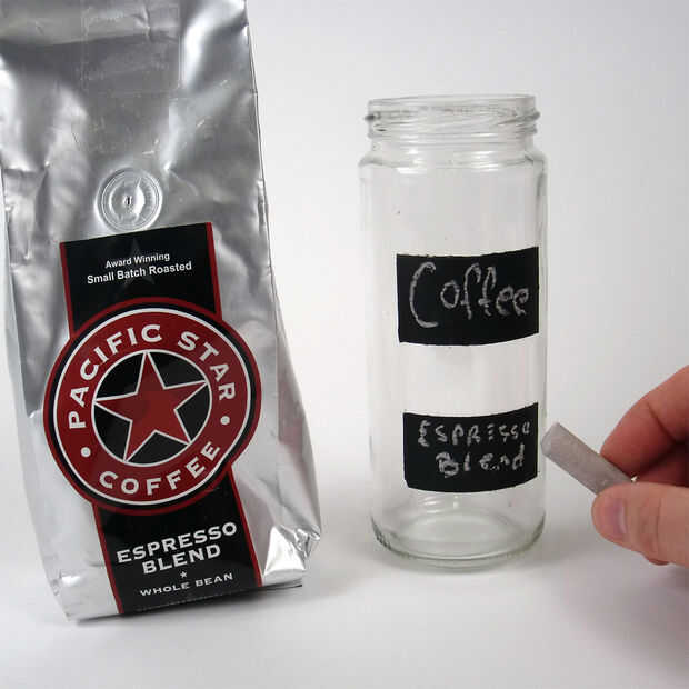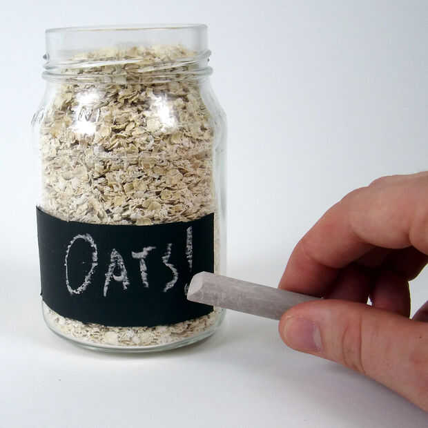 Ahora, llene sus frascos con lo que te gusta y marca el contenido de la jarra con tiza! La aplicación y la marca para sus tarros son infinitas.